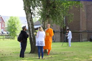 De voormalige Sint-Victorkerk aan de Koningstraat in Afferden krijgt na enkele jaren weer een bekroning. Nadat het smeedijzeren kruis tijdens de januaristorm van 2018 van de kerk waaide, is er hard gewerkt aan een nieuw ornament. Op 19 september zal deze in een officiële ceremonie op de toren van het monumentale gebouw worden geplaatst dat inmiddels eigendom is van de boeddhistische Stichting Dhammakaya Nederland. Het feit dat er een boeddhistisch gezicht wordt gegeven aan een voormalige christelijke kerk is uitzonderlijk in Nederland. Als voormalig inwoner van Beuningen en Bangkok (Thailand) heb ik een bijzondere band met de boeddhisten in Afferden. In 2018 bracht ik voor het eerst een bezoek aan de tempel nadat ik in de Tubantia (de regionale krant van Twente waar ik woonachtig ben) had gelezen over het bestaan van het klooster. In 2019 is hier een portretfilm over gemaakt en sindsdien ben ik altijd betrokken gebleven. Als storyteller wil ik graag bijdragen aan het doel van Stichting Dhammakaya Nederland om de beoefening van de boeddhistische leer beter bekend te maken. Daarom ging ik via Zoom in gesprek met de Nederlandse monnik Luang Phi Sander Khemadhammo over de aanloop naar de uitzonderlijke ceremonie die de kroon op het werk zal zijn.