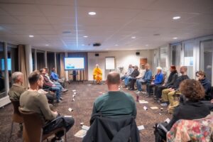 Vorige week donderdag gaf ik weer les voor de Dienst Geestelijke Verzorging bij Defensie, in het trainingscentrum Beukbergen. Ik vertelde over het leven als monnik en de principes van zelf-training van het boeddhisme. Dank aan Paul van Gogh en Alie Rozendal voor de uitnodiging.