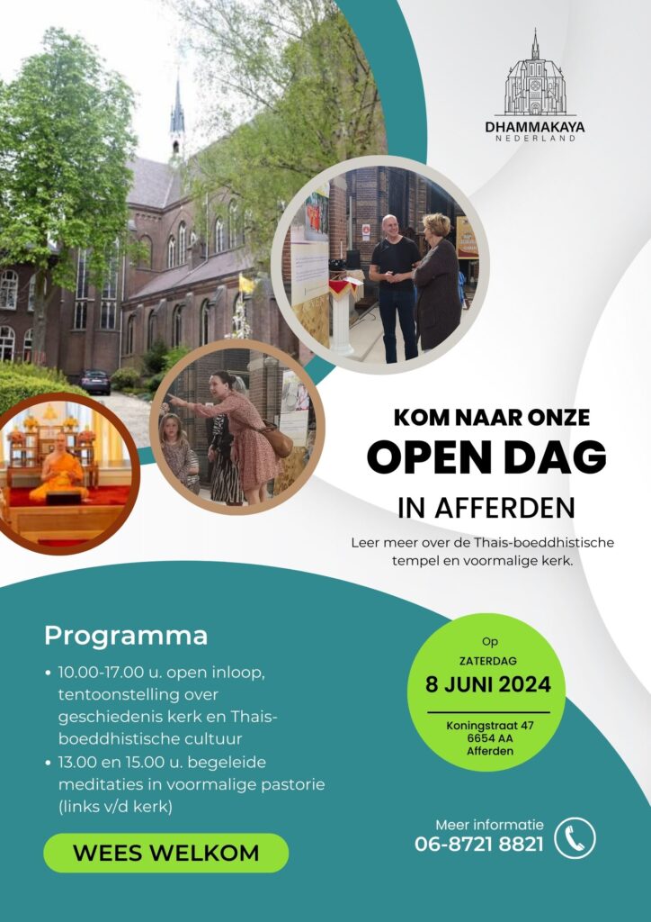 Op 8 juni houden we een open dag in onze tempel. Op deze dag bieden we de mogelijkheid om meer te leren over onze Thais-boeddhistische tempel en de voormalige kerk waarin we ons hebben gevestigd. De tempel is te bezichtigen van 10.00 tot 17.00 uur.