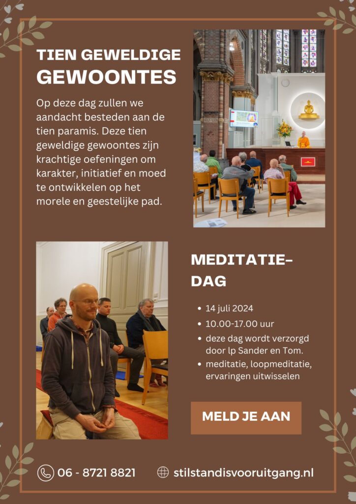 Zoals bij al onze meditatiedagen is er in de eerste plaats heel veel aandacht en tijd voor meditatie. Daarnaast is er volop de mogelijkheid om ervaringen uit te wisselen, vragen te stellen en van elkaar te leren. Voor meer info over onze meditatiedagen, zie hier. Voor inschrijving, zie hier. De meditatiedag is geschikt voor zowel beginners als mensen met ervaring.